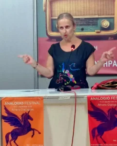 , Διευθύντρια Γραμμάτων του Υπουργείου Πολιτισμού της Ελλάδας και Πρόεδρος του Συλλόγου «Οι Φίλοι του ΑΝΑΛΟΓΙΟΥ»
